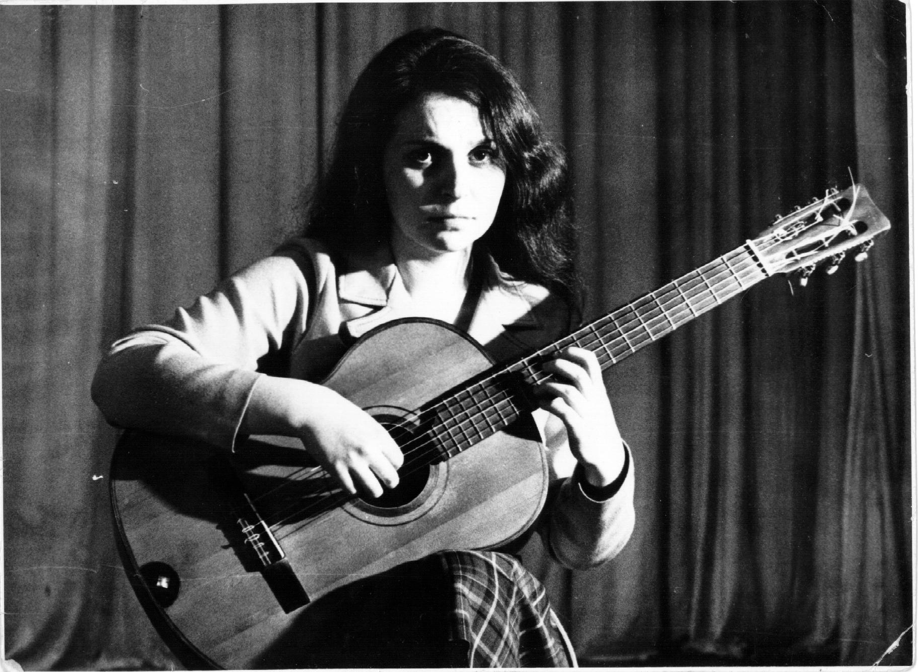 The rock band leader Vitaly playing and singing. Leningrad. 1980s