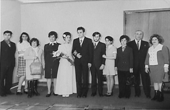 Vitaly and Yulia's wedding witnessed by mysteriously smiling Yevgeny Kalinsky. Odessa. 1975