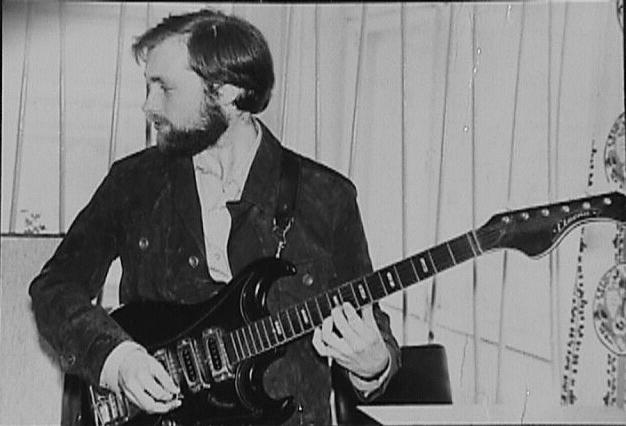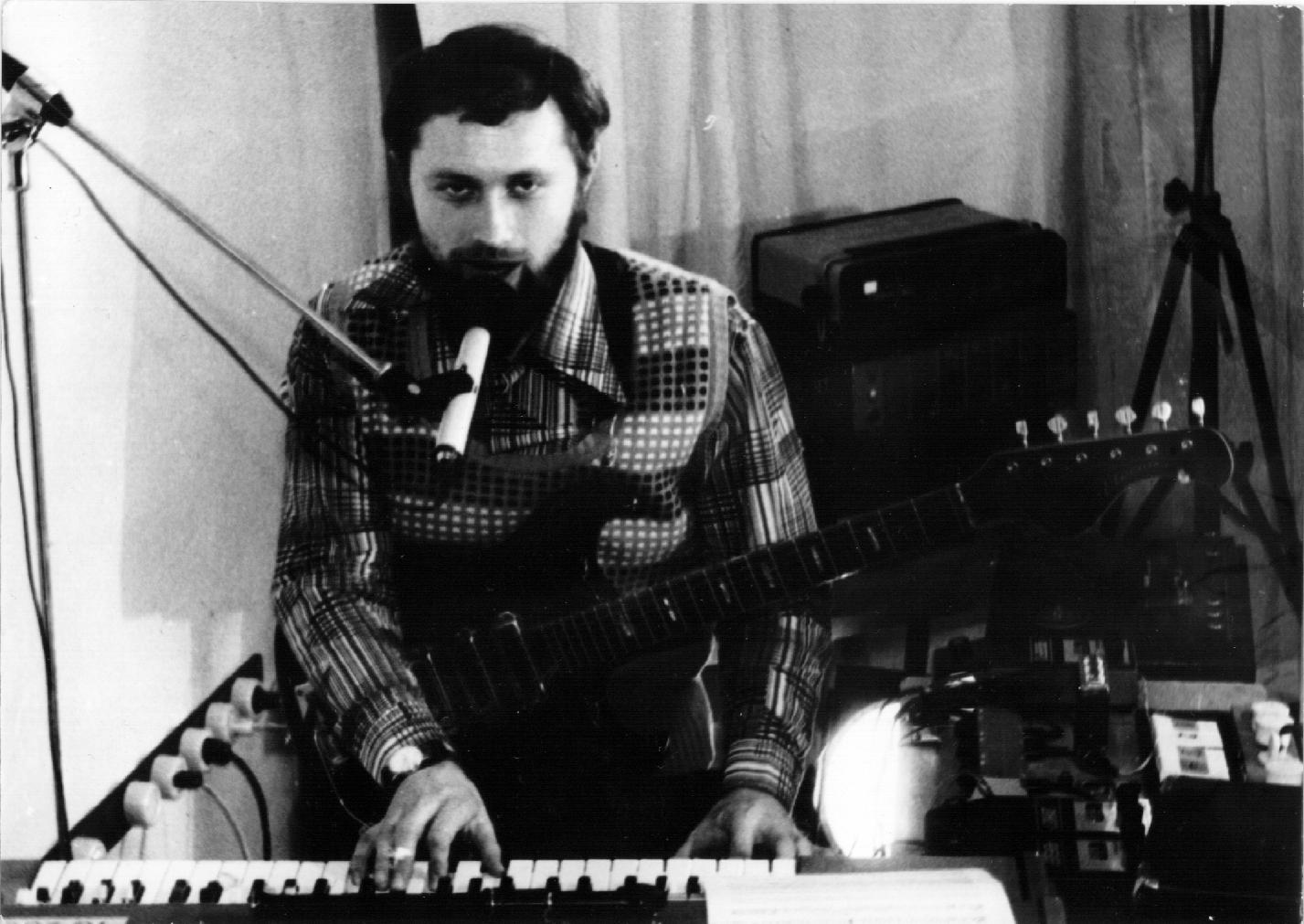 Vitaly playing electrical guitar. Leningrad. 1980s